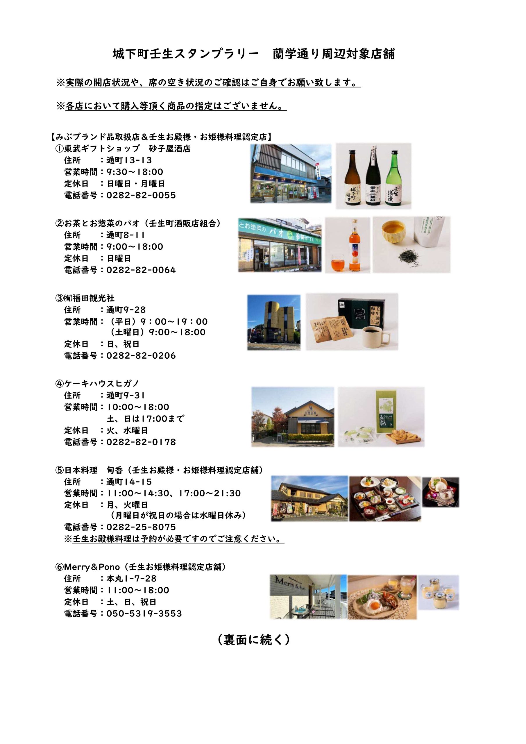 🌸城下町壬生スタンプラリー台紙表面・🌸城下町壬生スタンプラリー台紙裏面