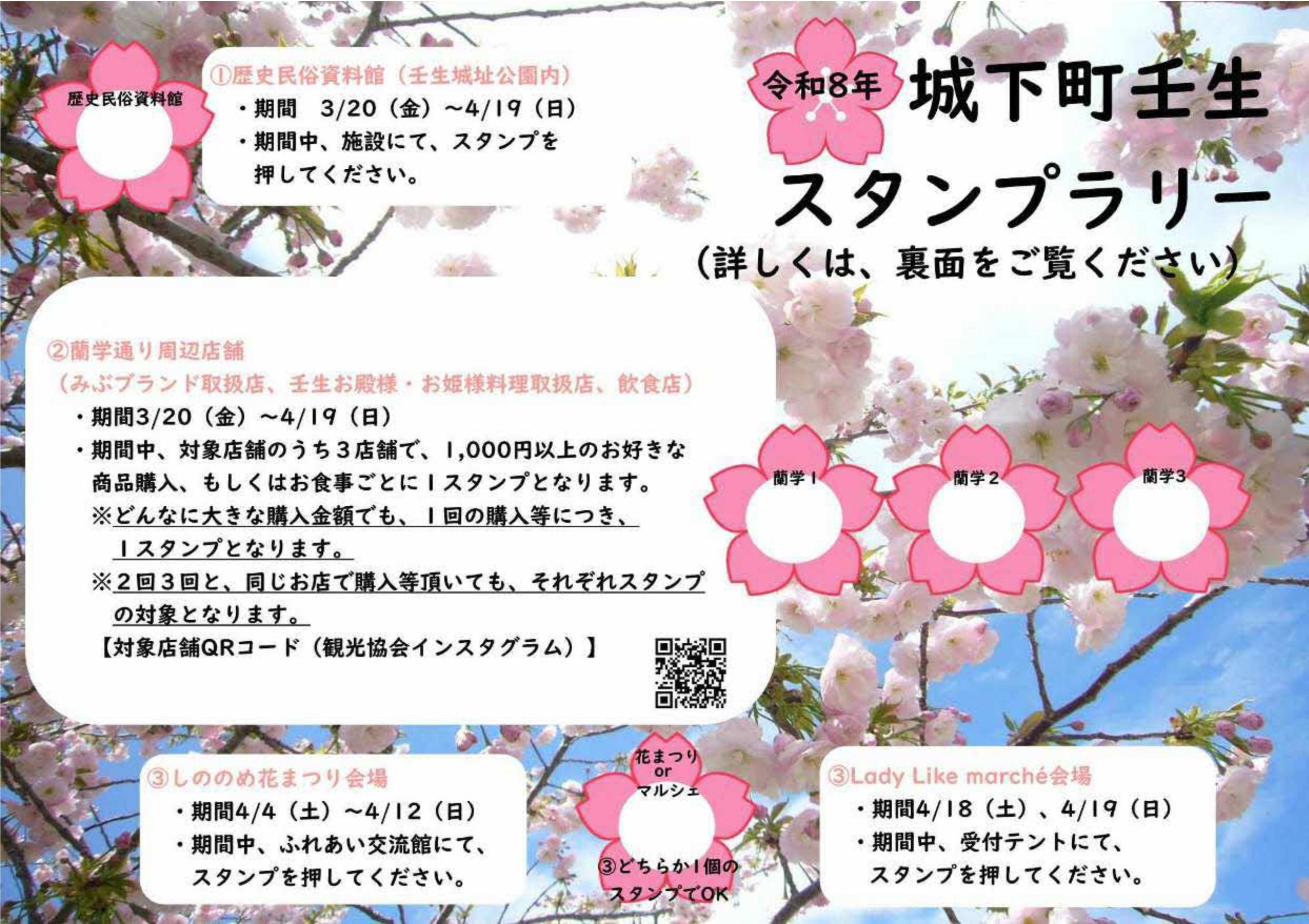 しののめ花まつり(4月4日~12日)のタイアップ企画として、「城下町壬生スタンプラリー」が開催されます!