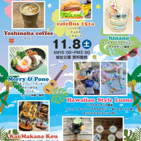 リゾート地・ハワイをイメージした食べ物とドリンク、ハワイアングッズの販売、ワークショップの開催!